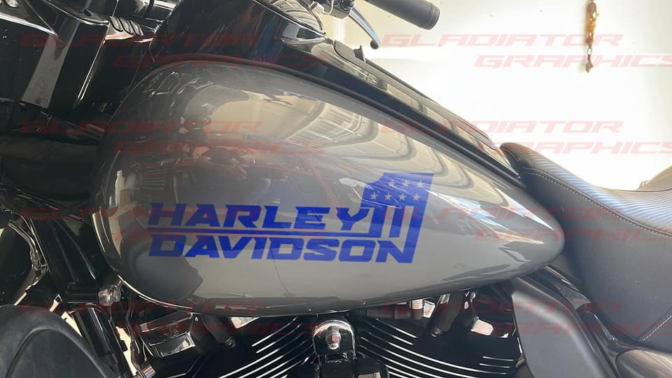 Hot off the press! Ready for 2026, these tank graphics look amazing! Sharp, and similar to what you see in the latest HD showroom. Made from Oracal 651 vinyl, 12" long. Single color only. This design is similar to what you see on the late model HD tanks as seen in the second image. Its my interpretation of that design.